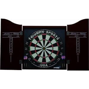 Access the most advanced RSS tools and use them to your advantage. | 2013-04-05 07:39:44.559598-04 Category: Sports & Outdoors Vendor: Cabinet Size 23-1/2"H x 21"W x 3"D Target Size: 18" x 1.5" 2 Sets of Brass Darts, Chalk, Eraser Self Closing Brass Hinges Limit  Product Description : The Triumph Sports Bristle Dartboard Package includes everything you need to experience classic darts steel tip darts. This set includes an official-size dartboard, cherry-finished wood cabinet with chalk scoreboards, and two sets of brass barrel darts.The included Triumph Dartboard is made with high-density self-healing sisal fibers to withstand years of use. A rotatable number ring allows for even wear and extended board life, while zero-glare graphics let you concentrate on your scoring zones. This dartboard also features a staple-free bullseye for fewer bounce-outs.A handsome wood dartboard cabinet will conveniently house your dartboard, darts, chalk, and accessories. Cabinet features include:Durable MDF cabinet construction with rich cherry finishChalkboards with cricket graphics for easy scoringInterior dartboard and chalk storageChalk and eraser includedSelf-closing brass hingesCabinet measures 23.5L x 3W x 21H inchesDartboard, cabinet, and 2 sets of brass darts. High-density self-healing sisal fibers. Rotatable number ring for even wear. Zero-glare number ring. Round wire design. Staple-free bullseye. Includes 2 sets of brass darts. Engineered MDF wood cabinet with cherry finish. Chalkboards with cricket scoring inside doors. Dartboard measures 18 Dia. x 1.5H inches. Read more... | |  hefei yuanyi binshuicheng, hefei, anhui 230000, CHINA